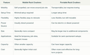 Comparing Mobile vs. Portable Rock Crushers: At a Glance