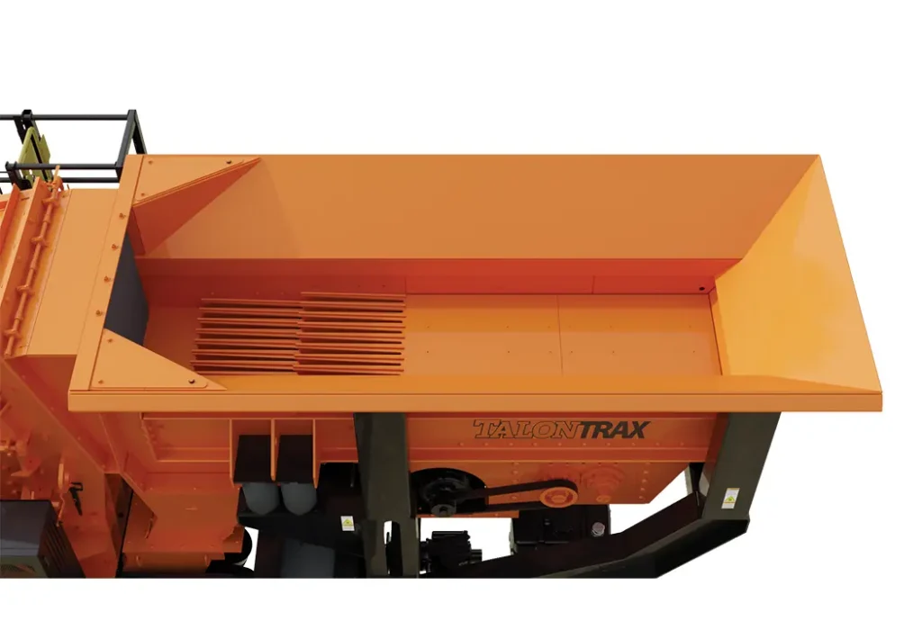 - El alimentador de bandeja debajo de la trituradora tiene motor doble y un espaciode descarga líder del sector de más de 23” (584 mm) que permite un mayor flujo de material y elimina obstrucciones.