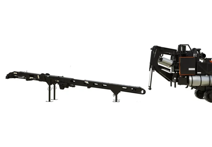 - Cuenta con grizzly con tolva by-pass con compuerta de flujo para remover material que pasa a través del grizzly o mezclarlo con el material triturado y transportador transversal para apilamiento. El transportador se pliega para su transporte o permanece fuera del alcance de la operación cuando no está en uso.